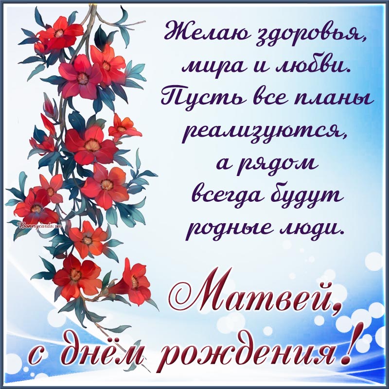 Открытка - цветы и прелестное пожелание на день рождения Матвею
