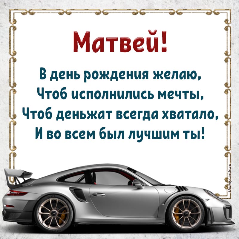 Шикарная картинка с супер машиной в рамочке для Матвея на день рождения