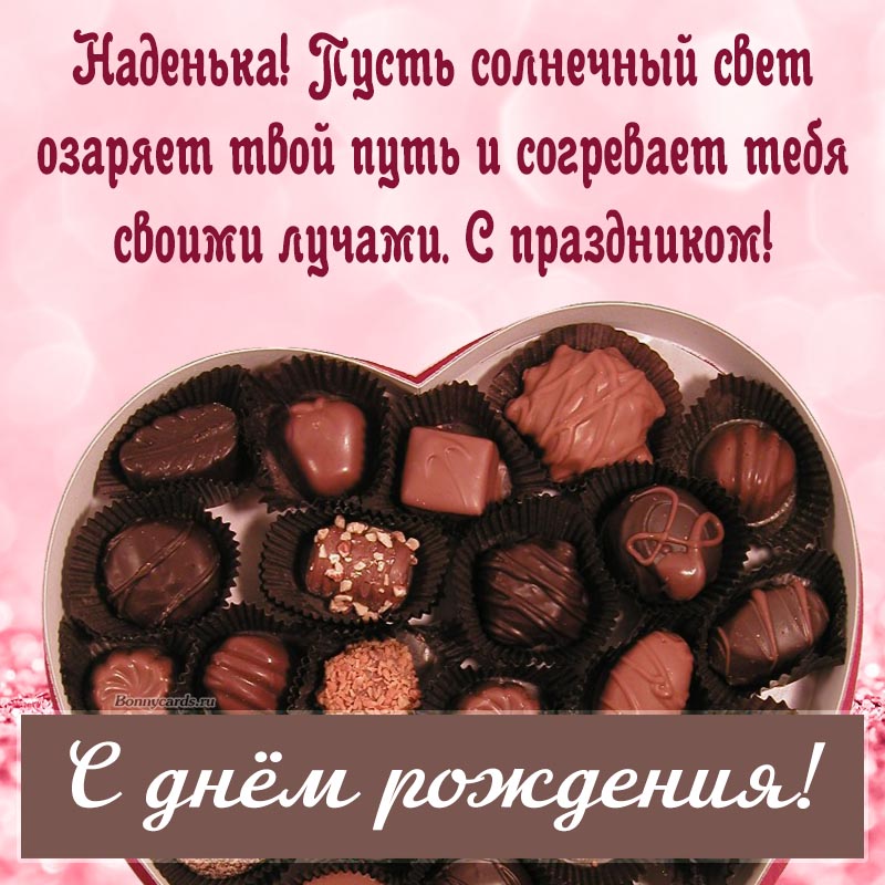 Открытка с шоколадными конфетами Наденьке, с праздником, с днём рождения