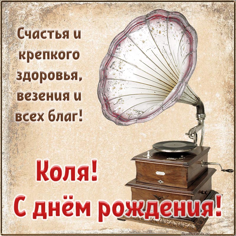 Открытка на день рождения - пожелание Коле счастья, крепкого здоровья, всех благ