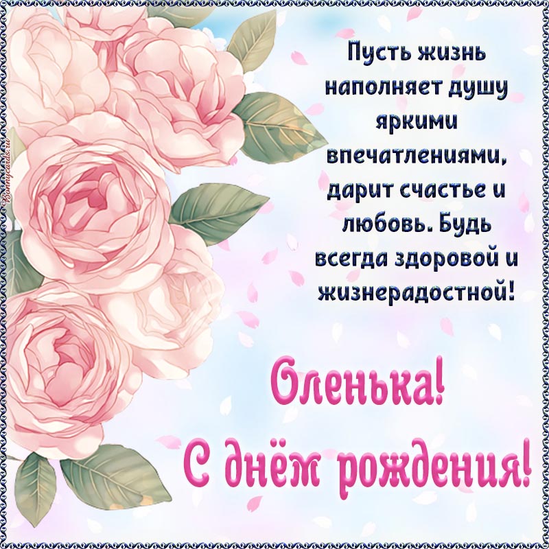 Открытка на день рождения. Оленька, пусть жизнь наполнит душу яркими впечатлениями