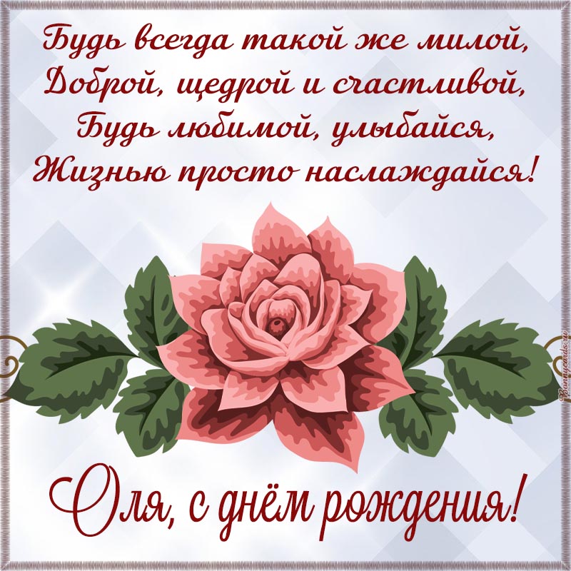 Открытка на день рождения. Пожелание Оле в стихах быть милой, доброй, счастливой