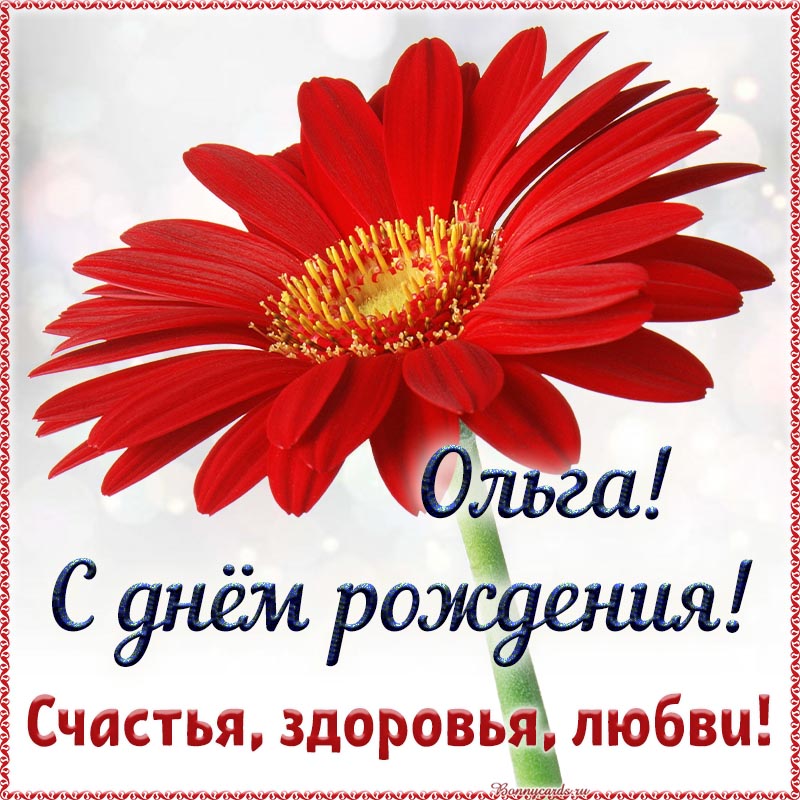 Текст - Ольга, с днём рождения, счастья, здоровья, любви.