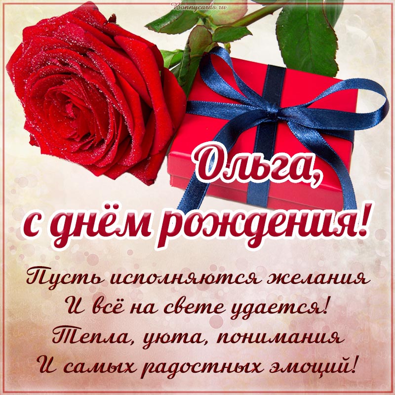Открытка - прелестное поздравление и цветок Ольге на день рождения