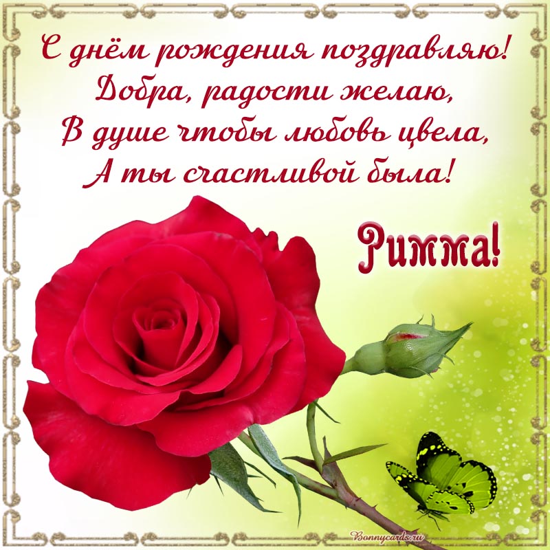 Открытка с розочкой и стихами Римме на день рождения.