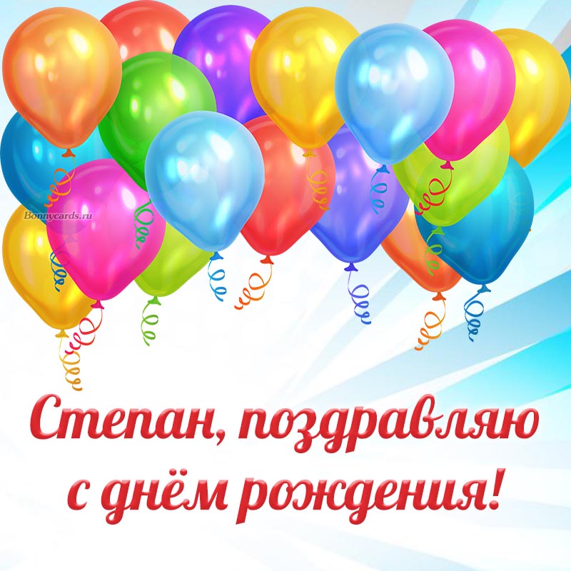 Яркие шарики и текст - Степан, поздравляю с днём рождения