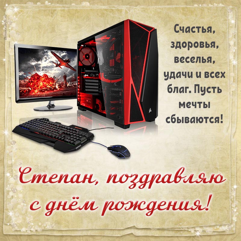 Картинка с компьютером Степану, пусть мечты сбываются, с днём рождения