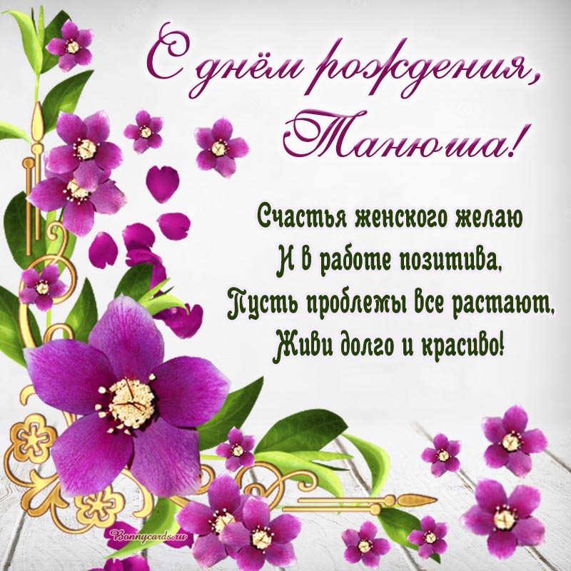 Открытка - цветы и поздравление в стихах Танюше на день рождения