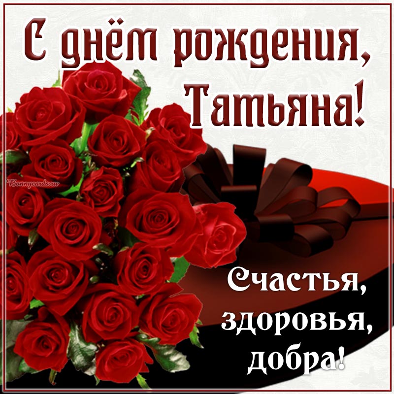 Открытка на день рождения - красные розы, бант и прекрасное поздравление Татьяне