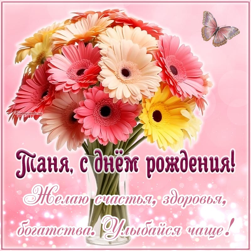 Букетик и слова - Таня, с днём рождения, улыбайся чаще
