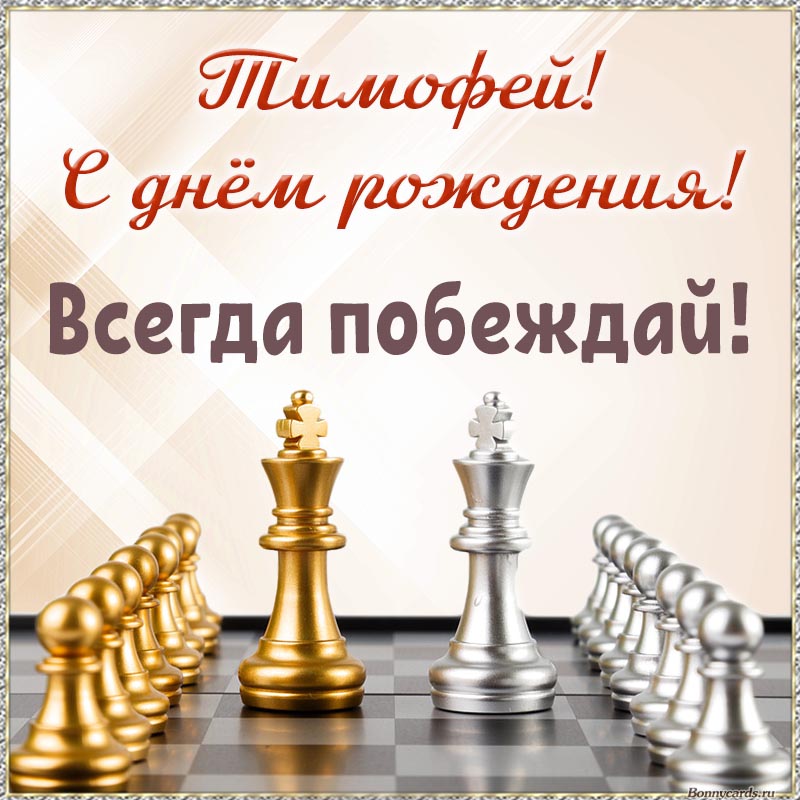 Шахматы и надпись - Тимофей, с днём рождения, побеждай