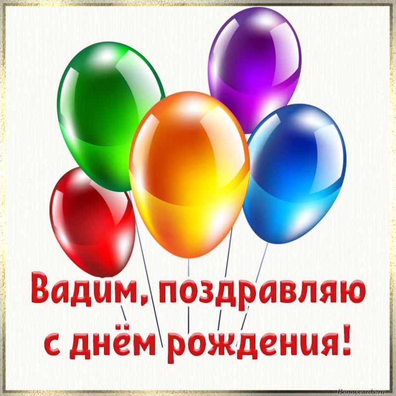 Картинка с яркими шариками Вадиму на день рождения.