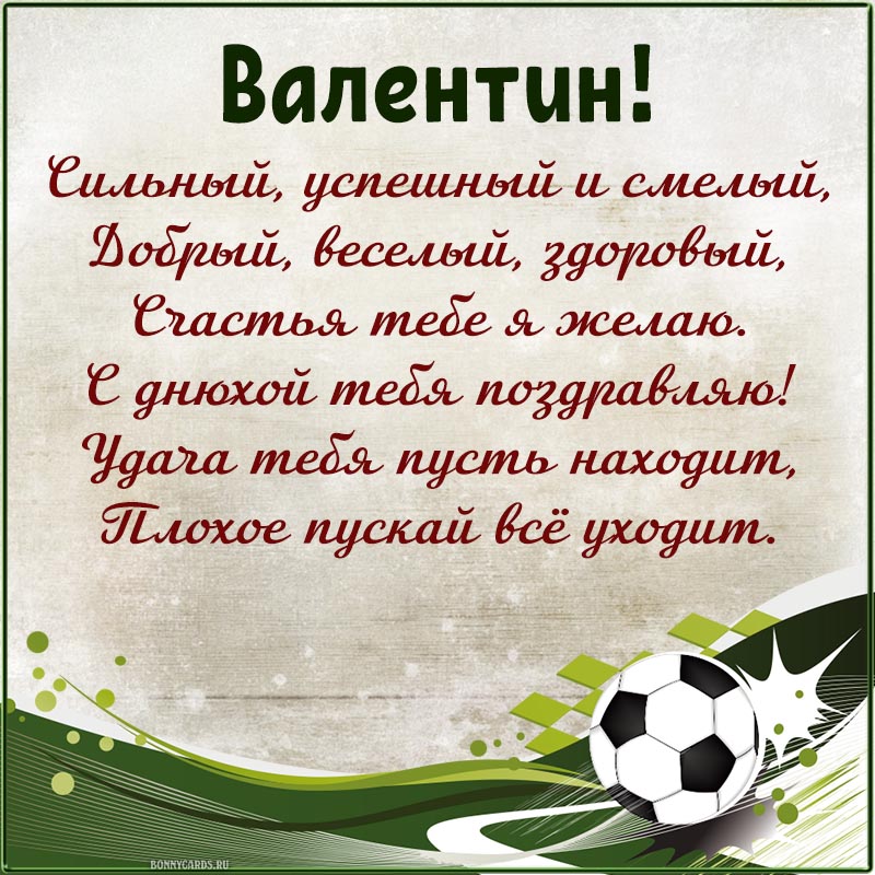 Электронная открытка с футбольным мячом Валентину.