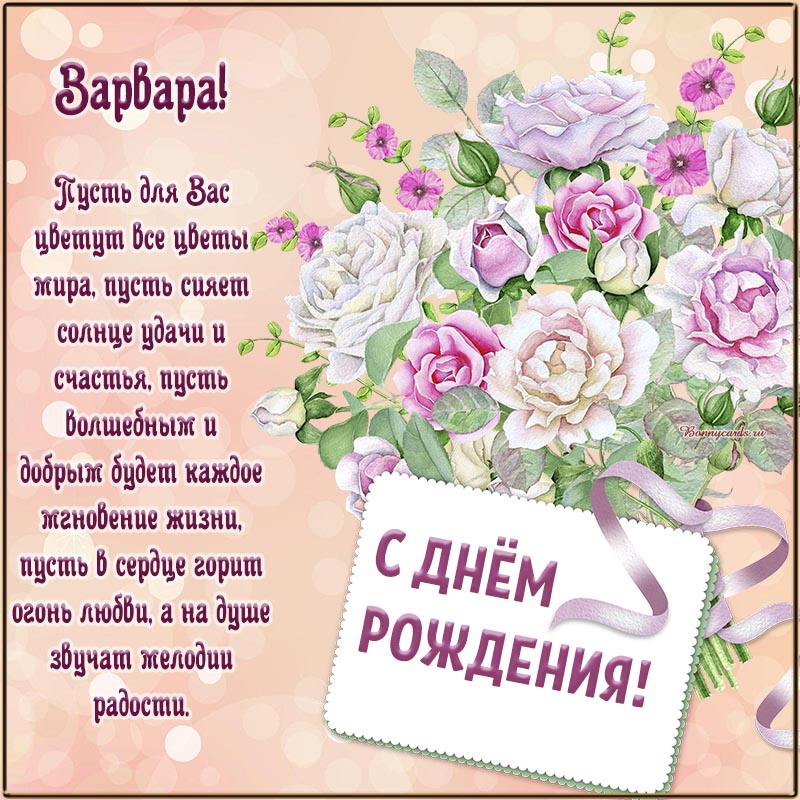 Открытка Варваре на день рождения. Пусть для вас цветут все цветы мира, пусть сияет солнце