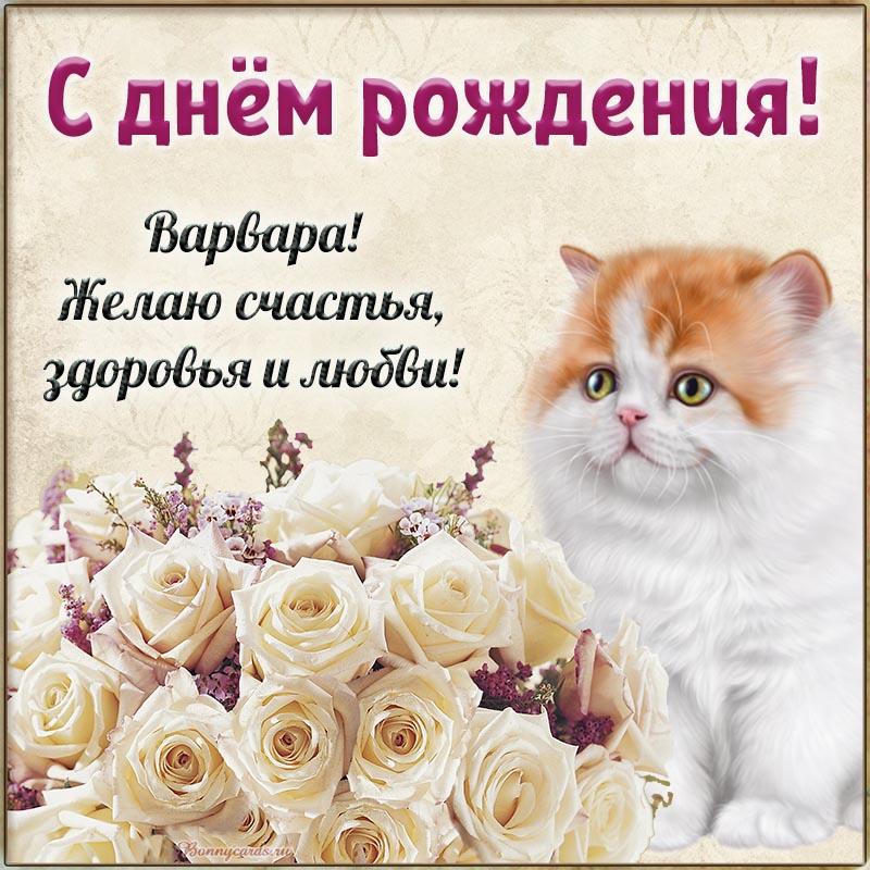 Изумительная картинка с котом и белыми розами Варваре на день рождения