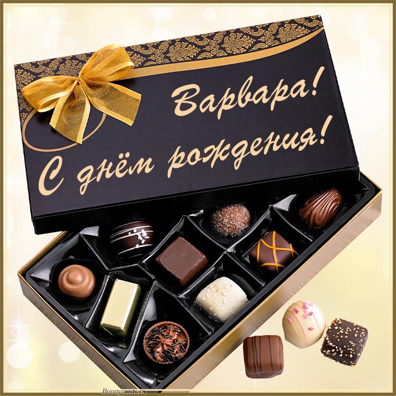 Картинка с шоколадными конфетами Варваре на день рождения.