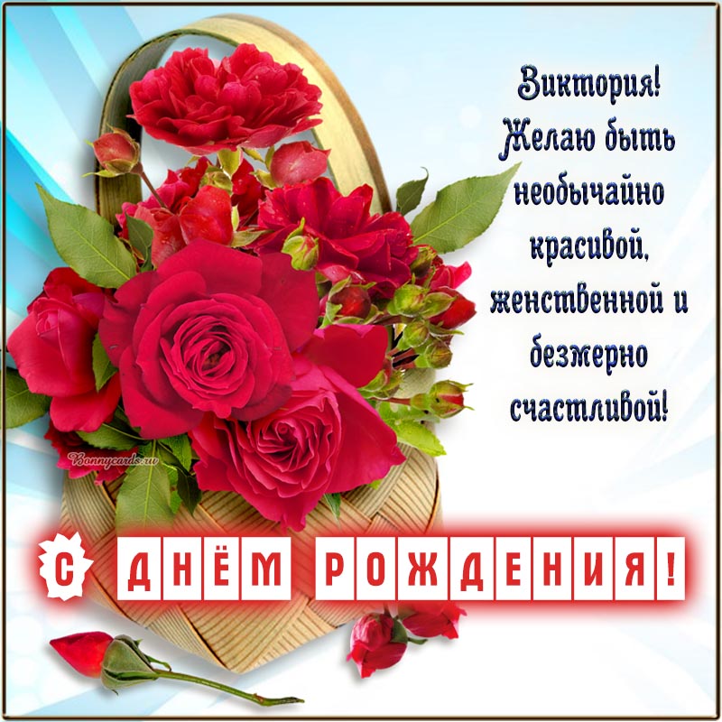 Открытка на день рождения - чудесное поздравление и цветы на голубом фоне Виктории
