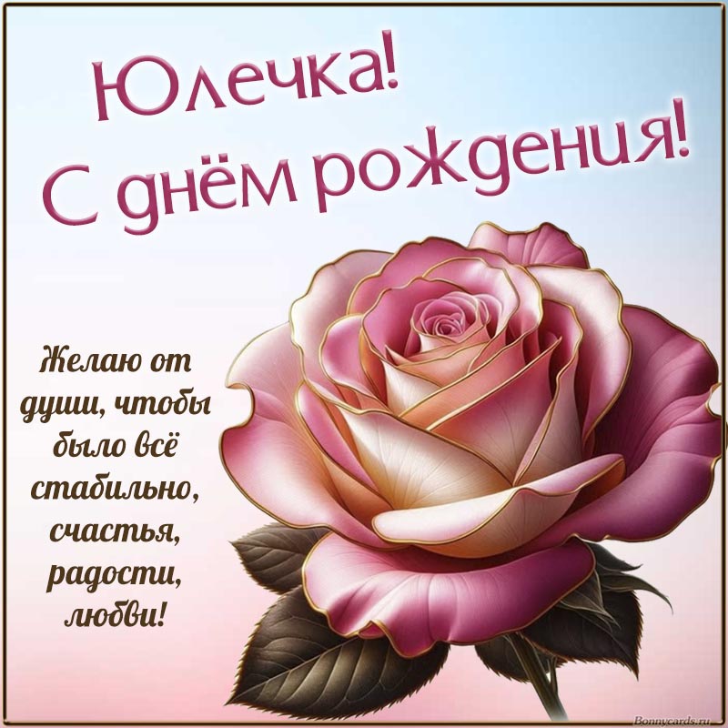 Открытка на день рождения. Надпись - Юлечка, желаю от души счастья, радости, любви