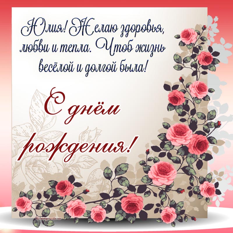 Открытка Юлии на день рождения. Желаю здоровья и тепла, чтоб жизнь весёлой и долгой была